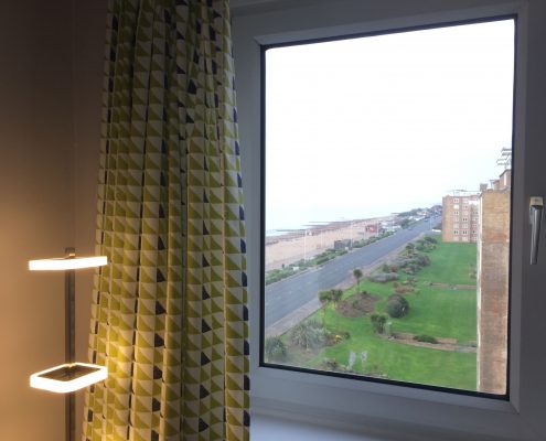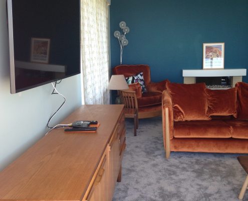 Jaw-dropping views of the ocean. Do I need to say more? Ok, how about the fabulous Ercol & Timorous Beasties-fabric collab sofa? Or even better the orange velour sofa and chair. Yes, I said orange velour. Or the awesome 1970s sunflower tile-topped nesting tables and the gorgeous 1960s sideboard. This room is just lovely. With access onto the balcony with its turquoise bench and tropical deckchair seating, you won’t know where on earth to sit and have a coffee. Now, if I was my husband, this whole paragraph would just read ’55” telly with BT Sport” – so, take your pick – whether it’s the views, the indulgent zany décor, or the gogglebox, you’ll fall in love with this room.