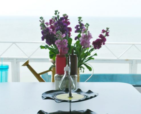 Tobago is fortunate to have not one, but two balconies that directly overlook the sea. One balcony is accessed from the Diner, so you can can sip your sherry (yes, that is my tipple; just call me Grandma) on the outdoor sofa and watch the busy beach below. The other balcony is accessed from the Lounge and extends all the way along and in front of the diner too, and has deckchair and bench seating. Both balconies have clear toughened frontages, which is perfect for seeing the runners, cyclists, scooterers, fishermen, paddle-boarders, windsurfers, dogs, grannies, and personal trainers strut their stuff while you sit exhausted with a fancy coffee. Seriously, it’s a tough life.
